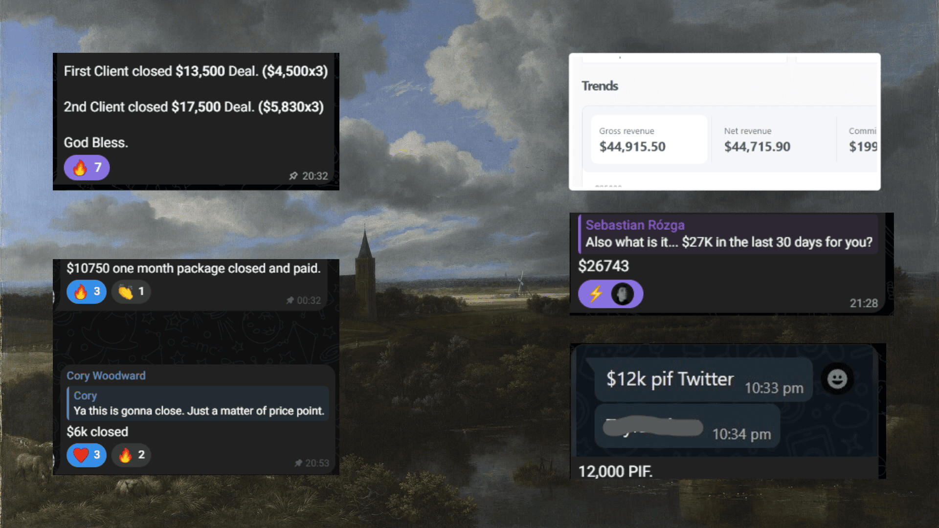 "Closed $10,750 deal and $6,000 one in the last 2 days."